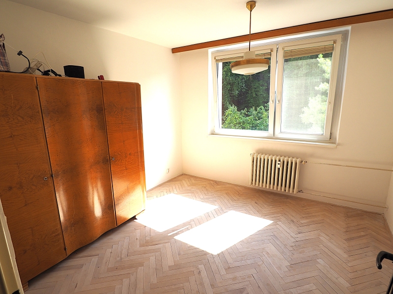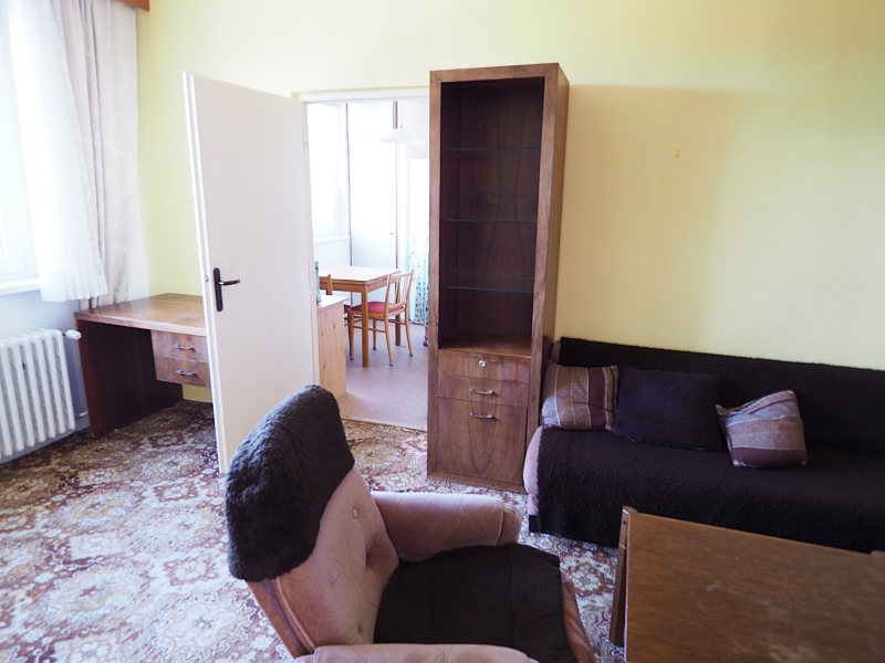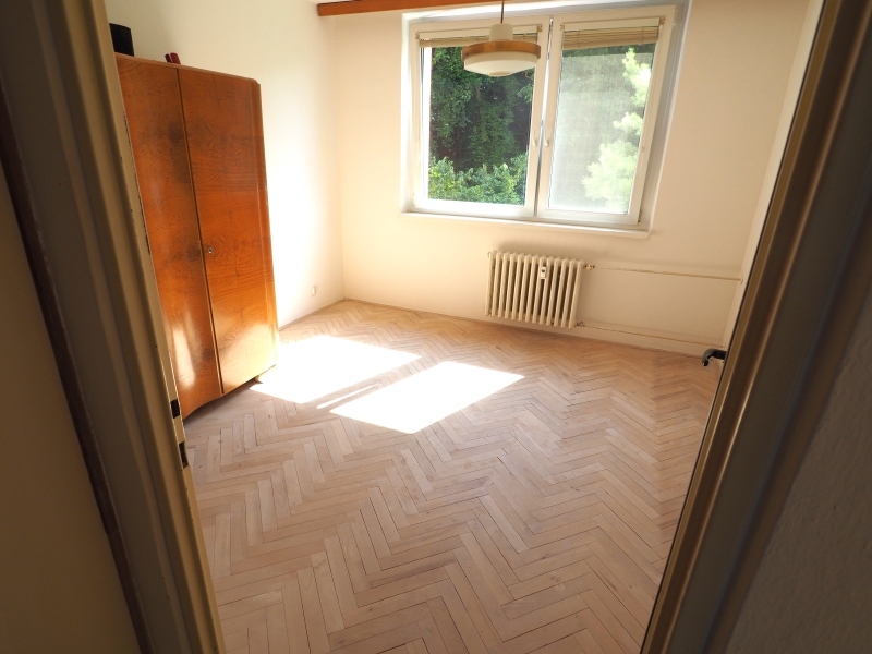 V pokojích jsou jako podlahová krytina parkety. V obývacím pokoji je koberec na parketách a nábytek, který lze odvézt a byt může být prázdný. V případě zájmu lze byt naopak dozařídit dalším nábytkem. V tuto chvíli je v bytě k dispozici pračka umístěná v koupelně a dále kuchyň disponuje kromě kuchyňské linky i ledničkou s mrazákem.