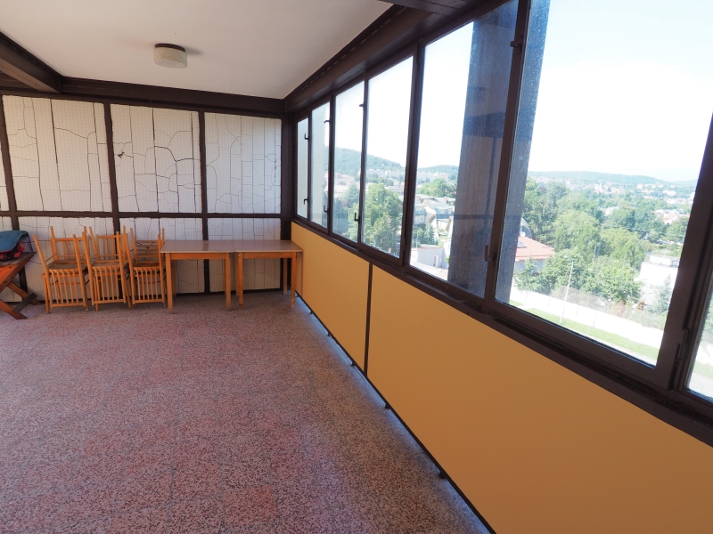 Orientace bytu: 2 ložnice a terasa jsou orientovány za dům do zeleně a vzrostlých stromů, kde je naprostý klid. Kuchyň sousedící s obývacím pokojem a druhá část terasy jsou orientovány před dům. Díky umístění domu na kopci mají místnosti nádherné výhledy na vzdálené město a do zeleně. Celý byt s terasou má užitnou plochu 107m2. Terasa je obytná, zastřešená, z jedné strany prosklená okny a může se tak používat od jara do podzimu jako delší velký letní pokoj s prostorem pro květiny, posezení, grilování, cvičení a nebo herní prostor.