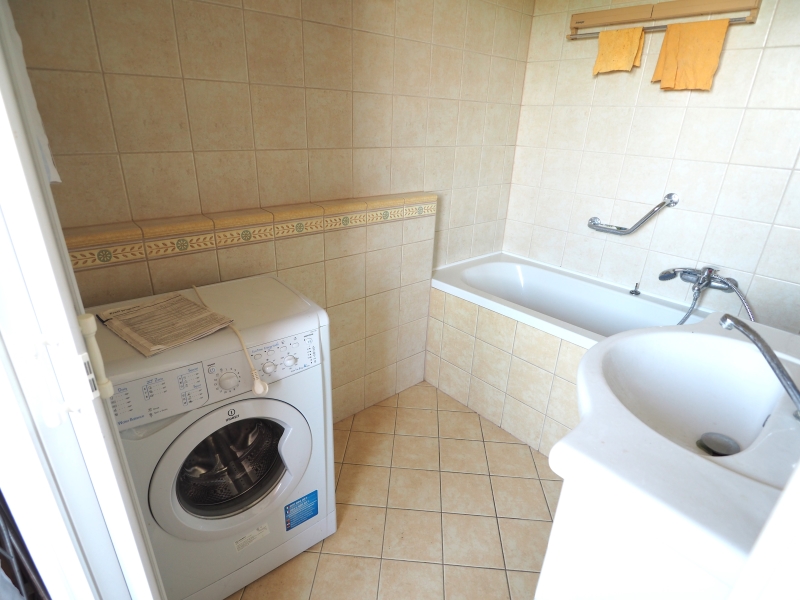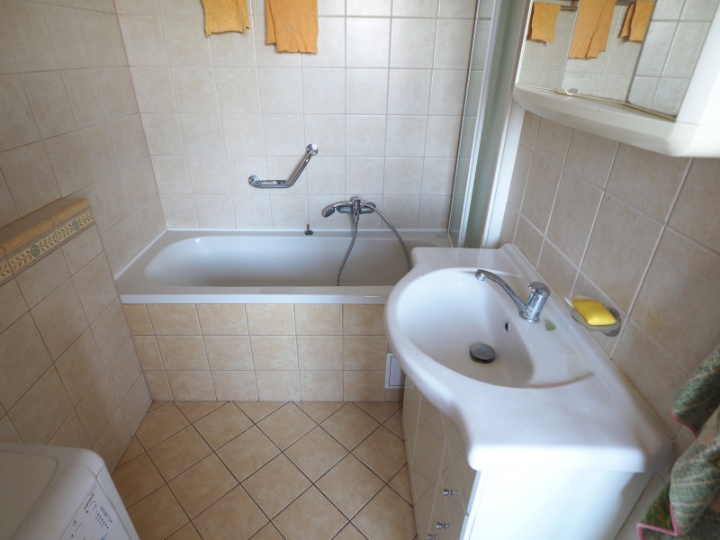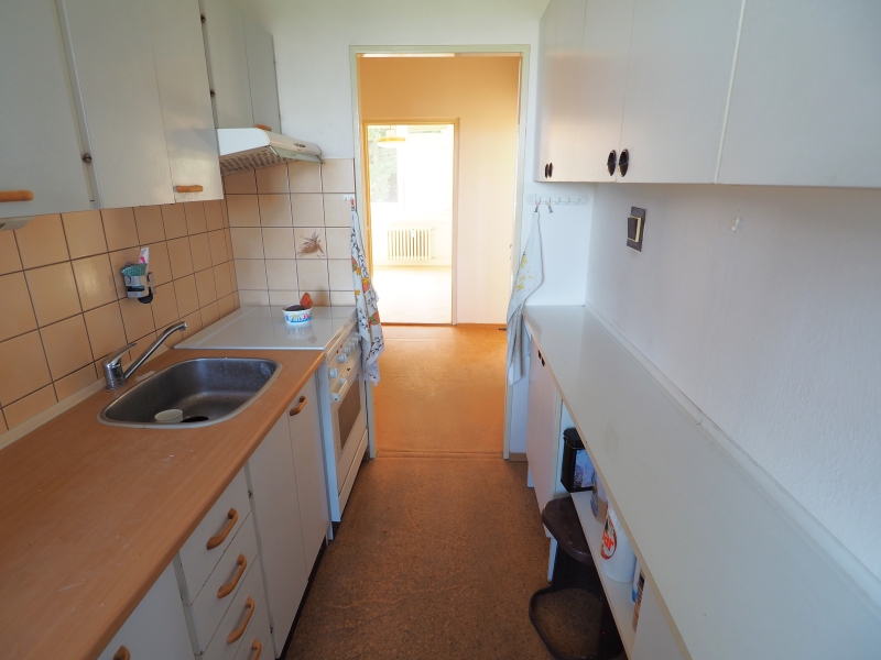 Dispoziční řešení: všechny 4 místnosti mají samostatné vstupy, koupelna s vanou, WC zvlášt. Kuchyň je průchozí do koupelny a do obývacího pokoje. Obývací pokoj má ještě jeden vstup z předsíně a z obývacího pokoje je přístup na obytnou terasu.