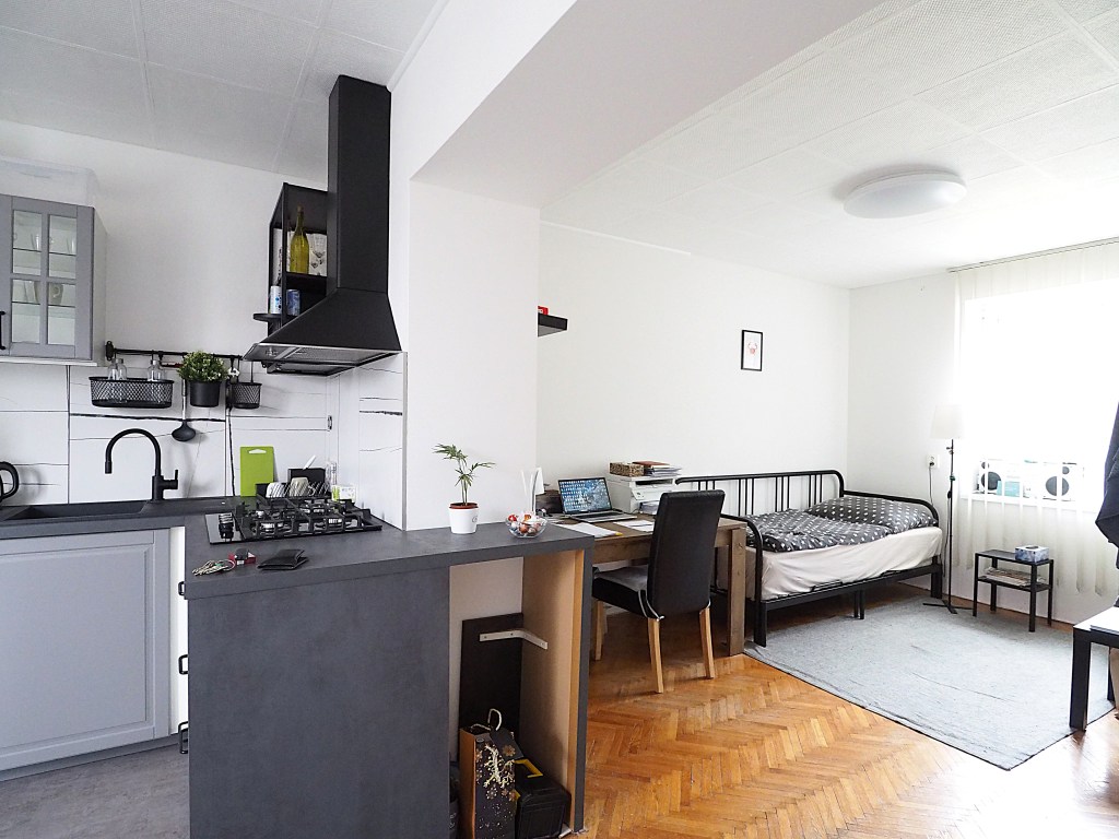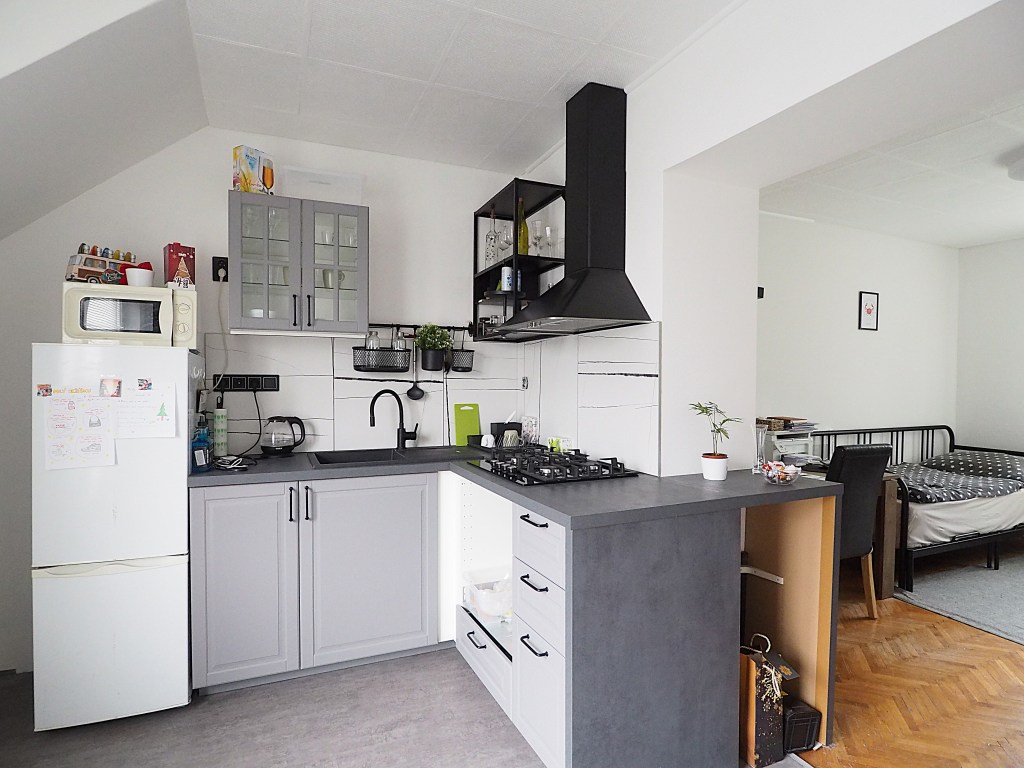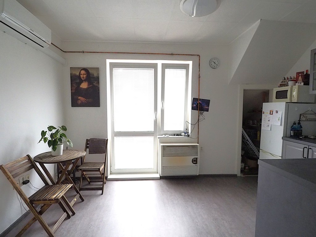Nabízíme pronájem pěkného slunného podkrovního bytu 1+kk s balkonem – terasou. Byt se nachází v rodinném domě na hezké klidné ulici na pomezí Černých Polí a Husovic. Hned vedle domu se nachází park. Prostorný balkon u kuchyně je orientovaný do klidné ulice a pokoj do zahrad. Byt je po kompletní rekonstrukci, má novou koupelnu a v kuchyni je osazena nová kuchyňská linka včetně spotřebičů – plyn. sporák, digestoř, el. trouba, lednice s mrazákem, mikrovlnná trouba. Koupelna je prostorná, světlá a dobře větratelná oknem, má nové obklady a dlažbu, moderní sprchový kout, WC, umyvadlo a pračku. Byt je vybaven klimatizací, která v létě chladí a v zimě topí. Ohřev teplé vody elektrickým bojlerem.