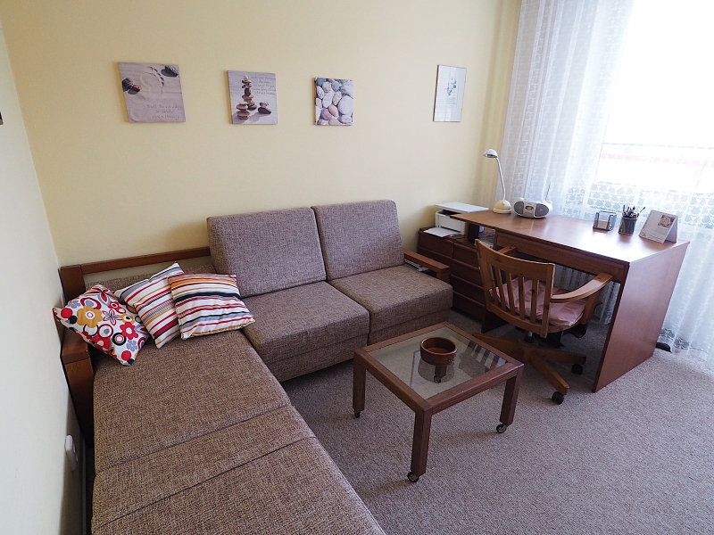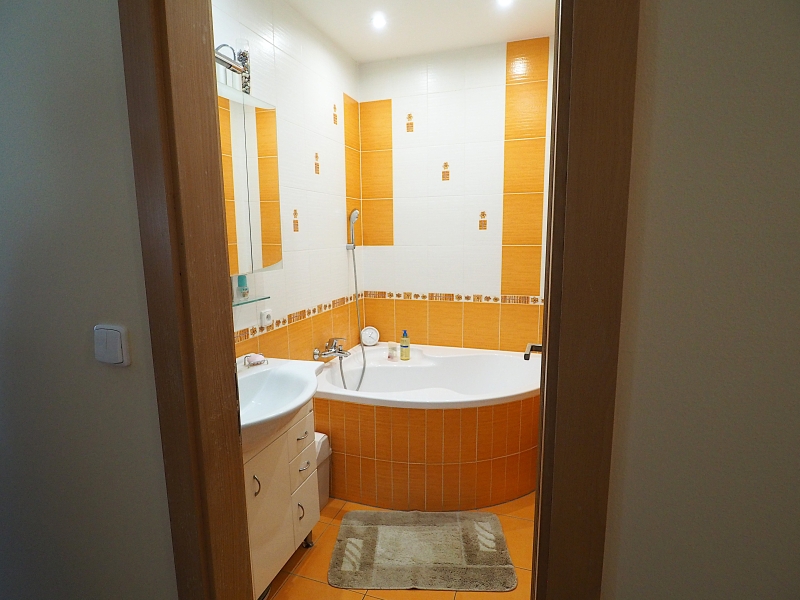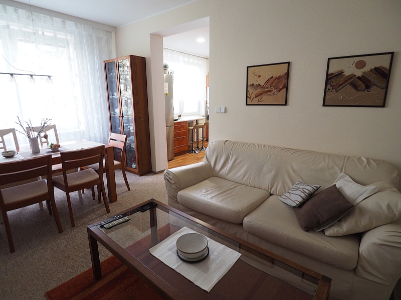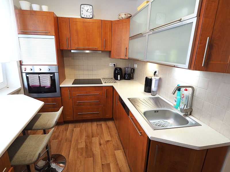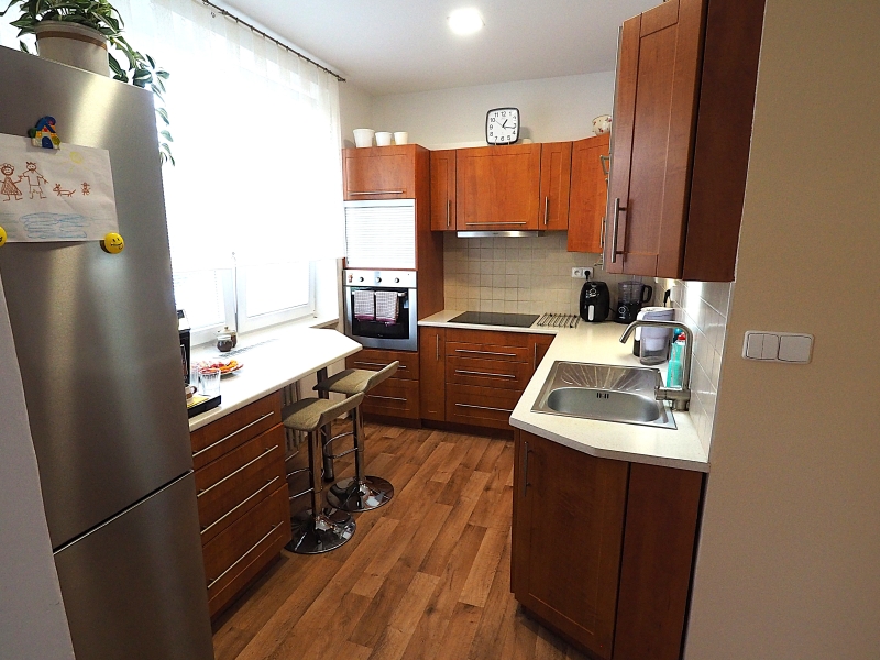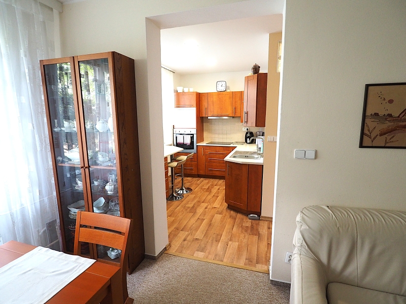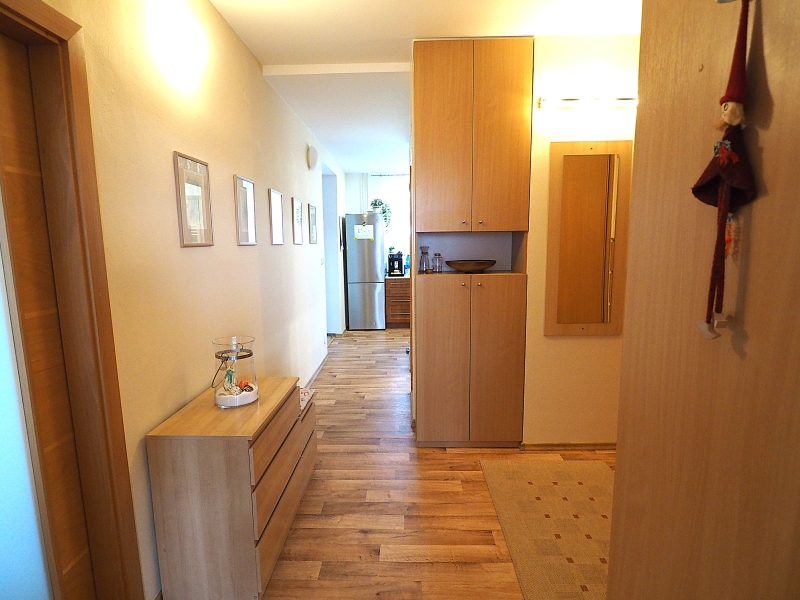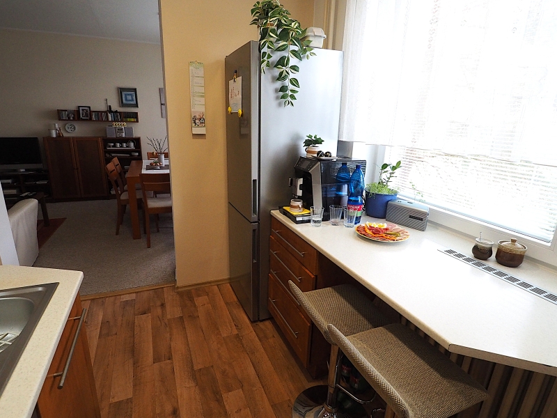 Byt je slunný a má příjemnou atmosféru. Orientace oken bytu z kuchyně a obývacího pokoje je do parkové zeleně za dům, okna z obou pokojů s balkony jsou orientována před dům na jižní stranu. Byt je po kompletní rekonstrukci, nová koupelna, elektřina v mědi, nové stupačky. Kuchyňská linka je včetně spotřebičů, které jsou ještě v záruce (varná deska a myčka). Ve všech pokojích jsou hezké parkety. Okna a balkonové dveře jsou plastová.