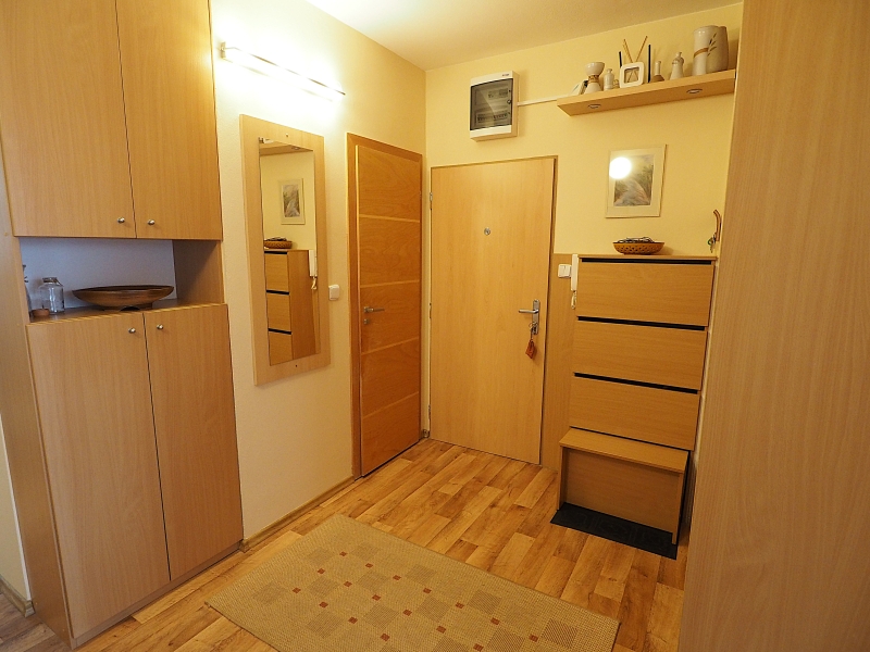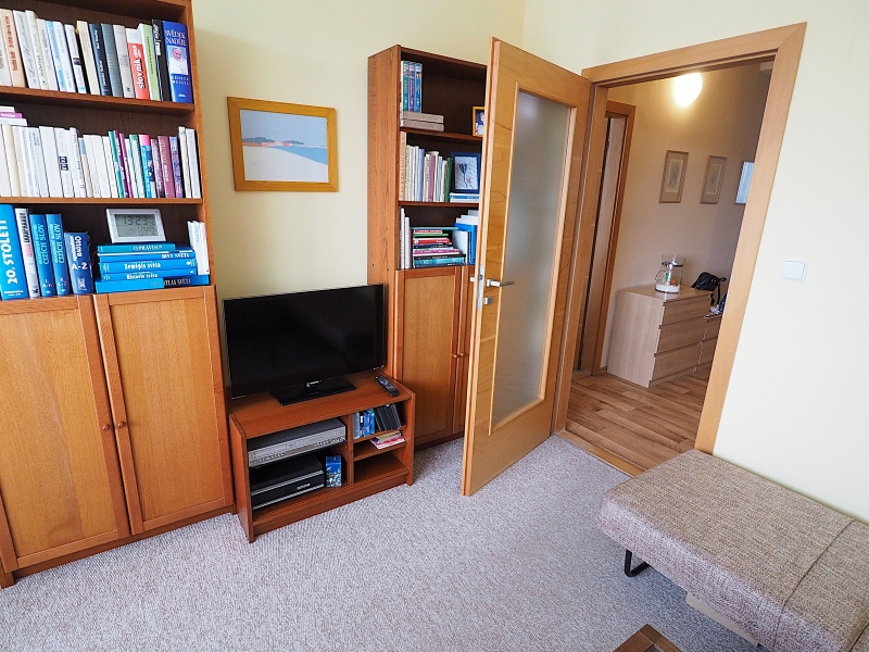 V ceně bytu je také kompletní vybavení ložnice, vestavné skříně na míru v obývacím pokoji a také v předsíni.
