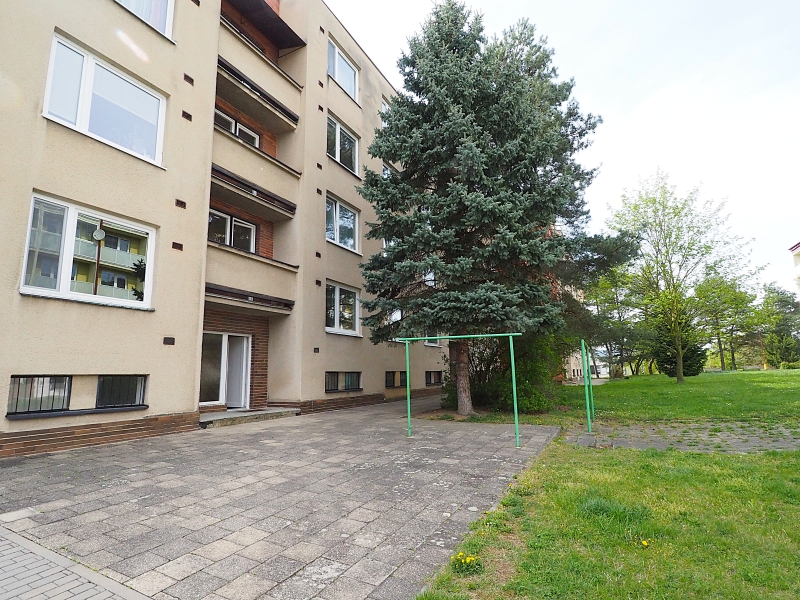 Dispoziční řešení bytu: předsíň bytu, odtud samostatné vstupy do 2 ložnicových pokojů, WC, koupelny a kuchyně. Kuchyň je dále průchozí do obývacího pokoje.