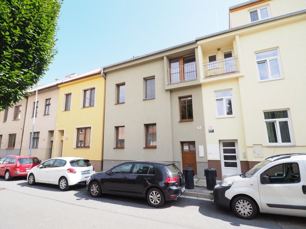 Velký slunný byt o výměře 47m2 ve 2.poschodí malého bytového domu na hezké klidné ulici Mošnova. Z bytu jsou výhledy do zeleně a zahrad. Dispozice bytu se rozprostírá přes celý půdorys 2. poschodí domu. V domě jsou už jen další 2 byty, každý v jednom patře, takže dům se třemi malými bytovými jednotkami poskytuje soukromí a klidné bydlení s možností využívání zahrádky. K bytu náleží prostorný sklep.