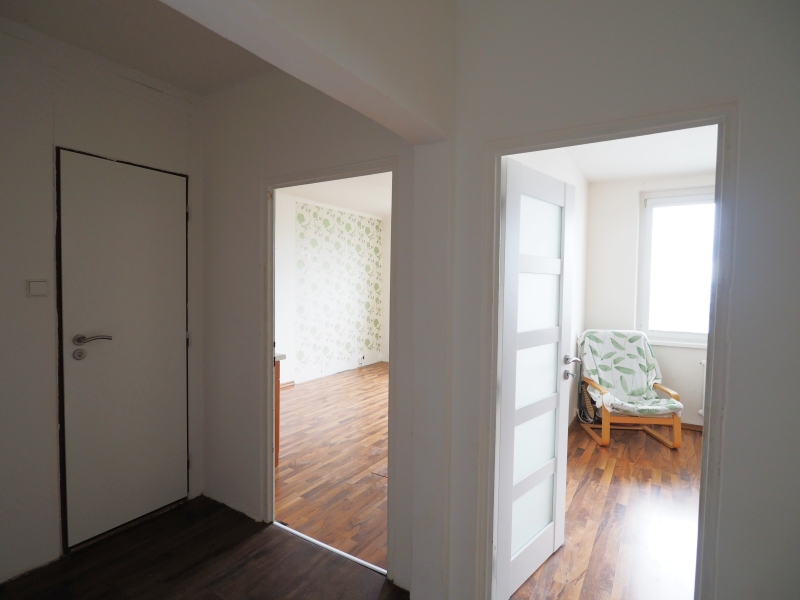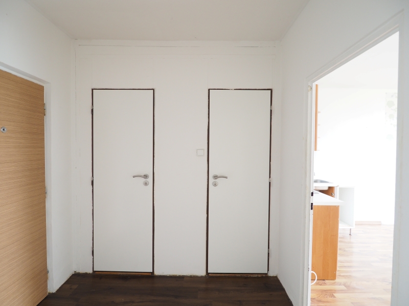 Do pokojů se vstupuje přes prostornou chodbu s novou vinylovou podlahou.