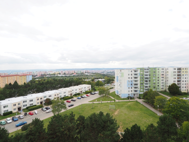 Byt se nachází v sedmém patře panelového domu po rekonstrukci s novou odvětrávanou střechou a výtahem. Okna pokojů skýtají panoramatické výhledy na Brno.